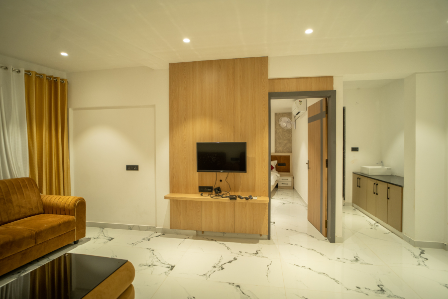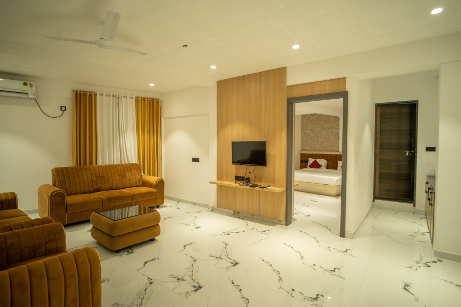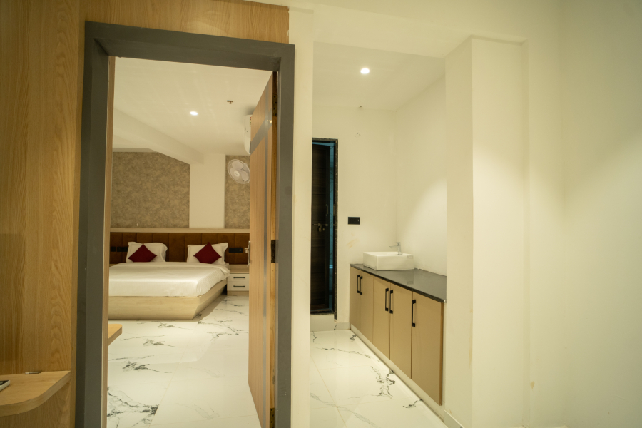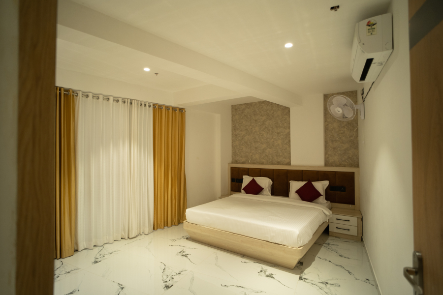 The Premium King Suite with Balcony (AC) offers an elevated stay experience with a perfect blend of luxury and comfort. Featuring a spacious layout, a plush king-size bed, and elegant interiors, this suite is designed for guests who appreciate style and relaxation. Step out onto the private balcony to enjoy refreshing views and peaceful moments. With modern amenities and a calming ambiance, this suite ensures a truly memorable and indulgent stay.